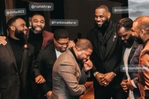 体育资讯7月18日讯 今日,骑士副总经理、詹姆斯的儿时好友布兰登-威姆斯更新Instagram Story,晒出他与詹姆斯等人的合影。